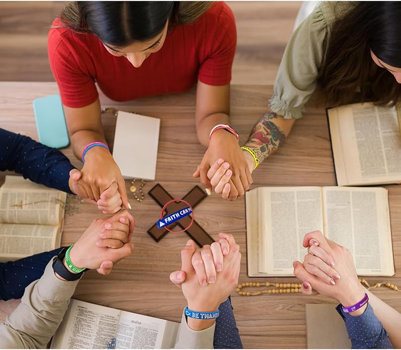 - Size Information: Each Bible bracelet has a circumference of 8 inches/202 cm, a diameter of 2.5 inches/6 cm, and a width of 0.5 inches/1.2 cm. The silicone wristbands are flexible and fit most people's sizes.