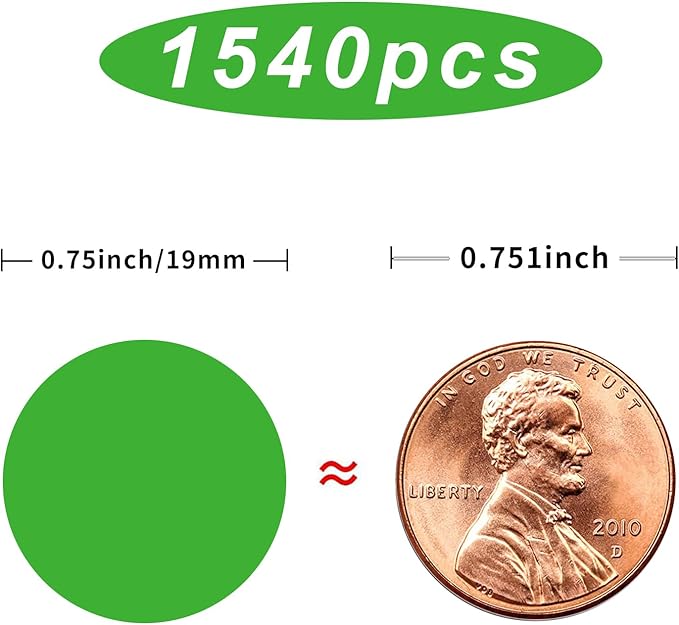 - 🌷10 colors-Bright Colored Labels Stickers,1540 PCS 0.75 Inch diameter color coding dots round stickers, 70 pieces per sheet.