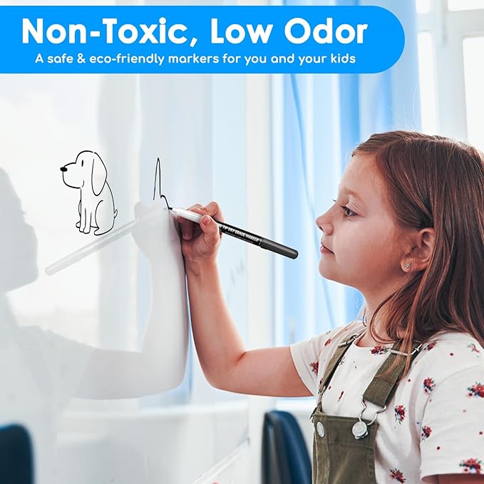 - Safe & Odor-free: The dry erase markers fine tip with Xylene & Toluene-free ink, low odor and non-toxic, ensuring a safe and pleasant writing experience for both children and adults in any setting