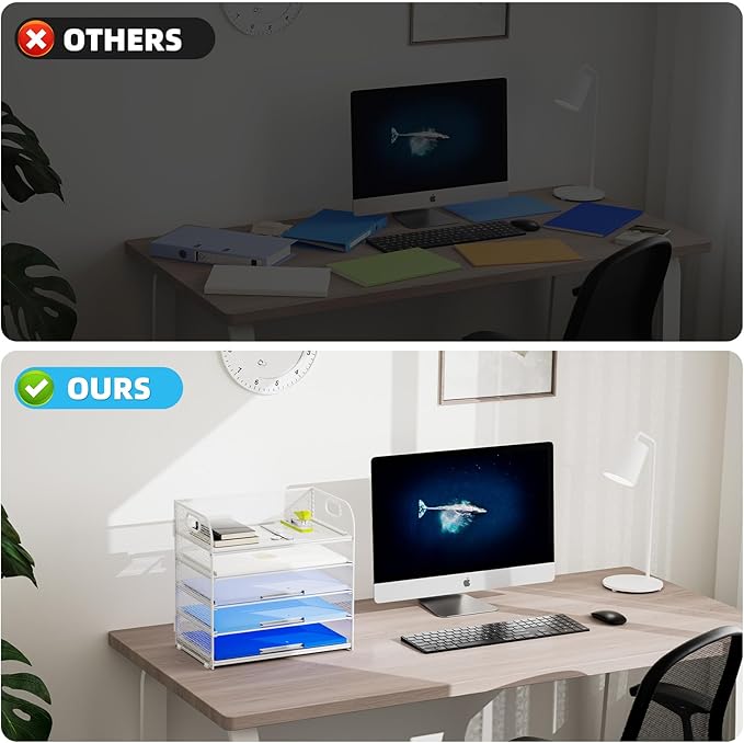 - 【PREMIUM QUALITY】The mesh desktop file organizer is made of lightweight durable metal mesh and reinforced with a solid steel frame that makes it have long-lasting strength and reliable performance.