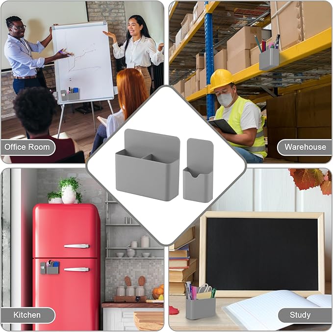 - Simple and Practical:Our magnetic pen holders are suitable for holding pens, pencils, dry erase markers, erasers, rulers, children's scissors and other office, home or school supplies. Also can be served for refrigerator, whiteboard, locker or other metal surfaces.Keep your stuff always organized!