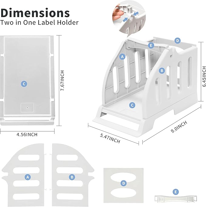 GUERMOK Thermal Label Holder for Rolls & Fan-Fold, Fragile Shipping Label, Label Stand Desktop Printer Holder-Home Office Accessory-Sticker Dispenser for Holographic Vinyl (White), 9 inches