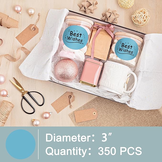 Hybsk 3 inch Circle Color Direct Thermal Stickers Shipping Labels for Barcodes,Name Tag,DIY Logo Design,Inventory– Compatible with Zebra,Rollo,Munbyn,and More-350 pcs (3 inch,Light Blue)