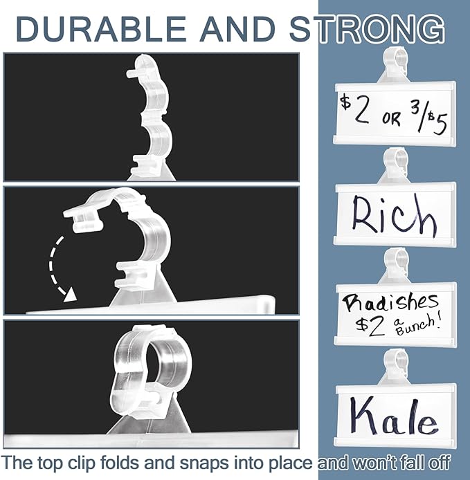 - Package includes 100 pieces plastic wire shelf label holders and 100 sheets matched white blank cards.
