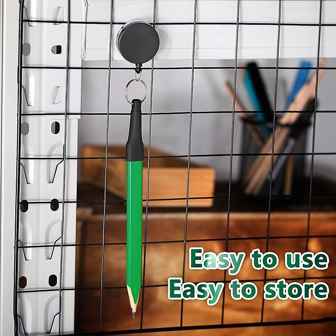 - Retractable Pen Holder: this pencil holder is designed with a silicone pen cover, just wear the metal clip on your apron or belt loop, and insert your marker into the rubber joint; The pencil holder is connected with 24 inch retractable cord, convenient to mark in the messy woodworking workplace and improve your work efficiency