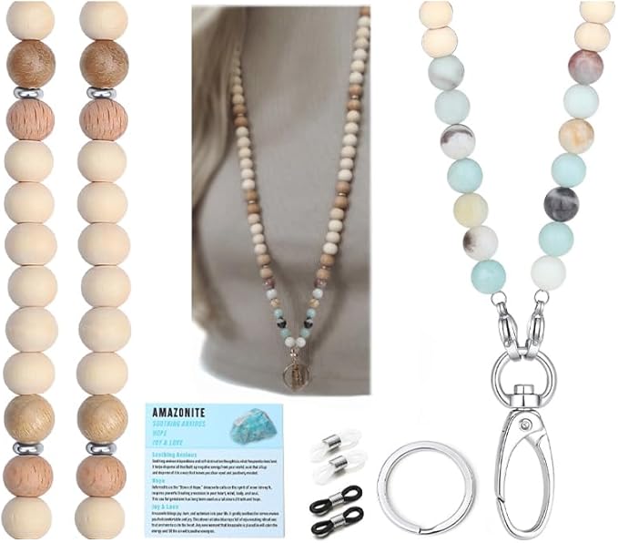 - Premium Quality - The cute lanyard for id badges is made from 8mm natural wooden beads and 8mm genuine Amazonite, with stainless steel lobster clasp and key ring. Every natural bead is high quality natural bead and has been carefully selected manually one by one.