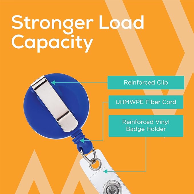 - 【NON-BREAKABLE CORD】 27.5" UHMWPE fiber cord which is the strongest man-made fiber in the world. 1.4x stronger than Kevlar, 5x stronger than Nylon. Ultimate bendable and non-breakable than steel wire. Unlock doors and access office is a breeze with this retractable badge reel.