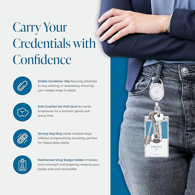 - 【Top Quality】Upgraded and reinforced construction makes the most solid and durable retractable badge holder of this kind on the market. we're different in all of these products that look the same!