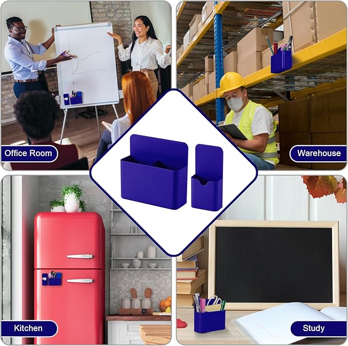 - Simple and Practical:Our magnetic pen holders are suitable for holding pens, pencils, dry erase markers, erasers, rulers, children's scissors and other office, home or school supplies. Also can be served for refrigerator, whiteboard, locker or other metal surfaces.Keep your stuff always organized!