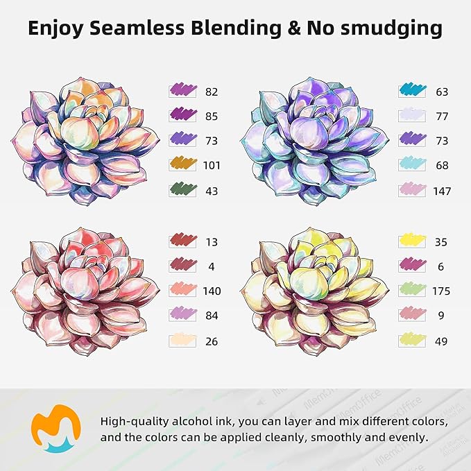 - PREMIUM QUALITY - Made from sustainable materials, these alcohol-based markers dry quickly. Layer and mix different colors without worrying about smudging or blotches. Expand your artistic horizons with our high-quality alcohol marking ink