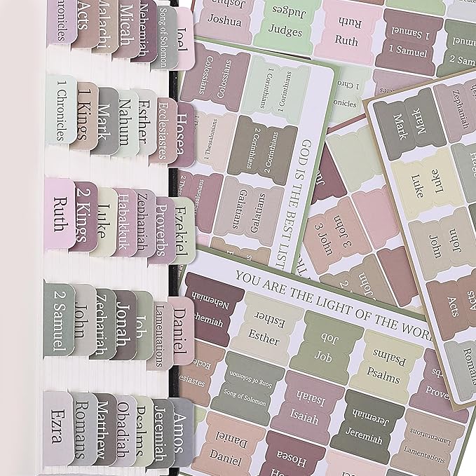 - With their large, clear font and bright printing, these bible tabs offer a convenient organizational tool for those looking to engage in Bible study or journaling.