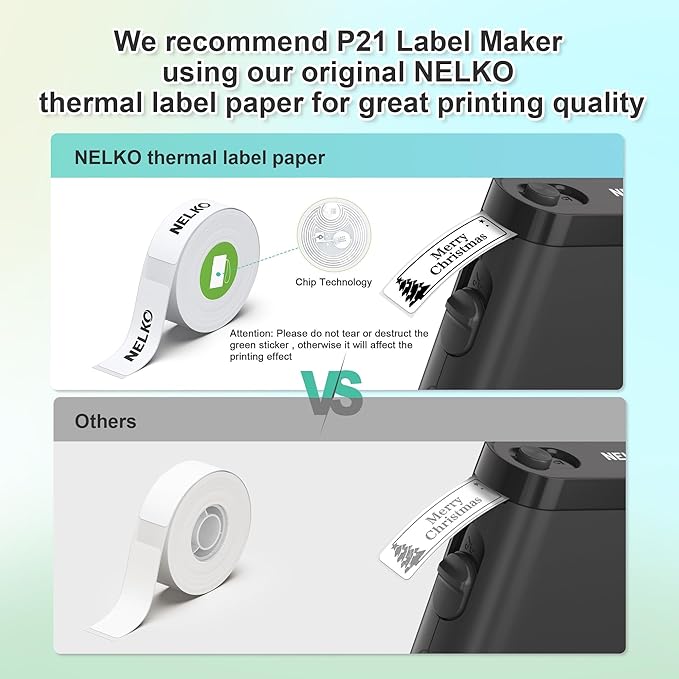 - 2024 New Version: Compared with the traditional label makers, half weight and size of the traditional label maker, smaller, smarter and convenient for users to carry. Wireless bluetooth label maker can slip into your pocket, allow printing anytime, anywhere. We recommend using our NELKO thermal label paper for good printing quality. Attention: For P21 Nelko APP iOS Users, Nelko iOS V2.7.0 printing multiple copies abnormal, please update Nelko APP to the latest version V2.7.1