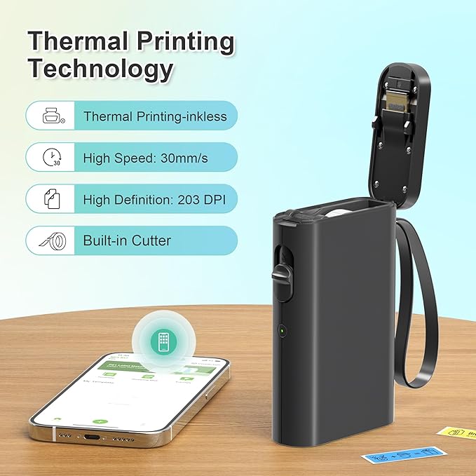 - High-quality Printing: Label Makers with BPA-Free Direct Thermal Technology. Equipped with high-speed chips and 203 DPI, you can enjoy high-definition without relying on ink or toner. Label maker built in durable rechargeable battery, it can work for a long time. This label maker is monochrome printout, which only prints black text. We can create color label and need to use color pattern label tapes for printing.(Note: Not including charging adapter, not suitable for fast charging adapter)