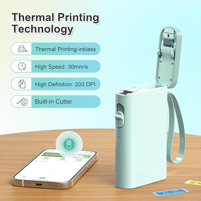 - High-quality Printing: Label Makers with BPA-Free Direct Thermal Technology. Equipped with high-speed chips and 203 DPI, you can enjoy high-definition without relying on ink or toner. Label maker built in durable rechargeable battery, it can work for a long time. This label maker is monochrome printout, which only prints black text. We can create color label and need to use color pattern label tapes for printing.(Note: Not including charging adapter, not suitable for fast charging adapter)