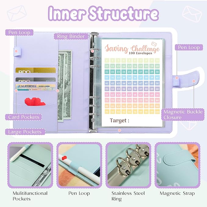 - 【100 Envelopes Challenge Binders 】 Dive into the 100 days money saving challenges and make daily savings a habit! Reach your financial milestones by filling up each envelope every day until you achieve your goal. It's an easy and fun way to stay committed to your savings plan.
