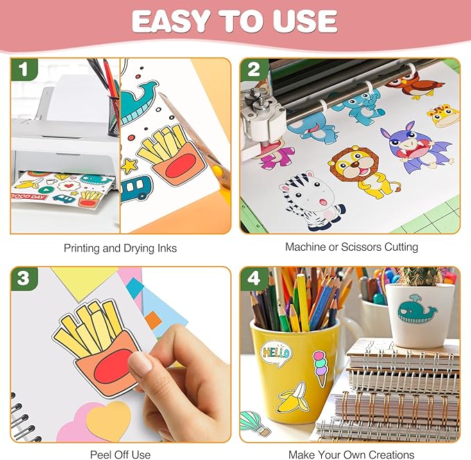 - Usage Suggestions:Printable vinyl sticker paper is recommended to print with the ink in its original form and wait for it to dry, then simply seal the decal with a UV resistant sealer spray to improve the waterproofness and extend its life.