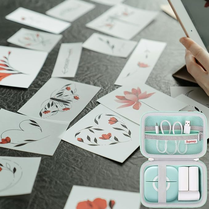 - UNIQUE DESIGN: The cabaro pocket printer case features a double zipper design, allowing you to easily take out your beloved for cabaro pocket printer. Extra zipper mesh bag for storing usb cable or rolls thermal paper and other small accrssories. Elastic band keeps your for sticker printer machine firmly in place without worrying about it sliding and damaging.