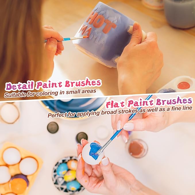 - 🎨【Basic Small Paint Brushes Bulk】The craft paint brushes make blending colors easier, perfect for artists, students, teens, children, and painters of all levels. A large number of brushes can help to avoid mixing colours when changing colours in a painting, which helps to improve the efficiency of painting and make the picture more tidy.