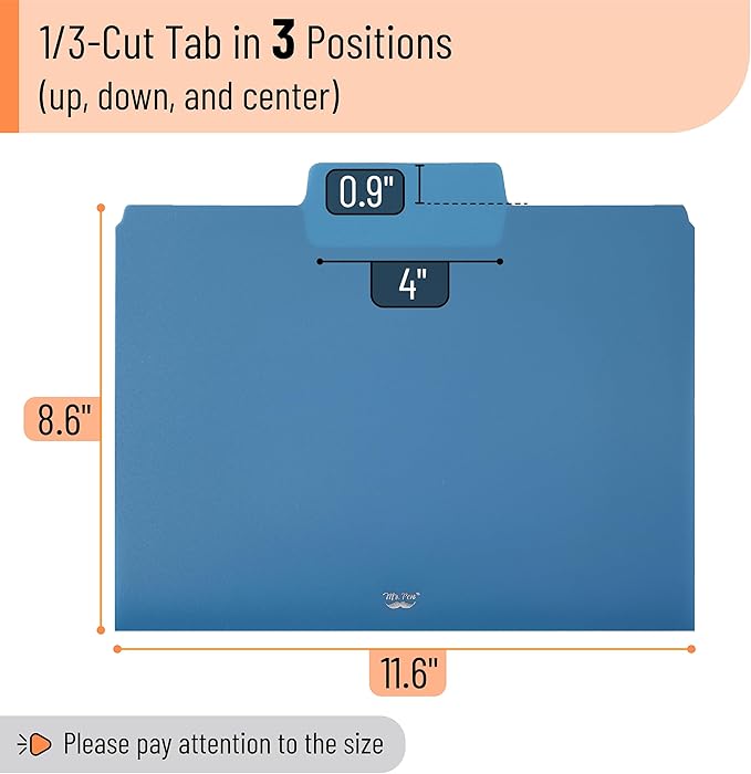 - Mr. Pen file folders feature a 1/3-cut tab in three positions - top, middle, and bottom - for easy labeling and tracking, enhancing your document organization and retrieval efficiency.