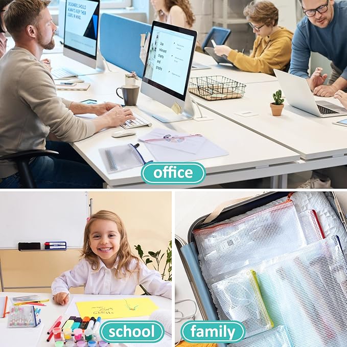 - Versatile And Multipurpose: With their translucent design and colorful zippers, these mesh pouches make it easy to identify and locate your items quickly. Suitable for use at home, school, college, office, and during travel, they can be used to organize books, papers, bills, photos, cosmetics, toys, and more