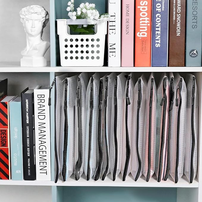 18 Pack A4 Mesh Zipper Pouch Bags, Zipper Pouches of Office Supplies, File Bags for Classroom Organization, Puzzles, Board Game Storage