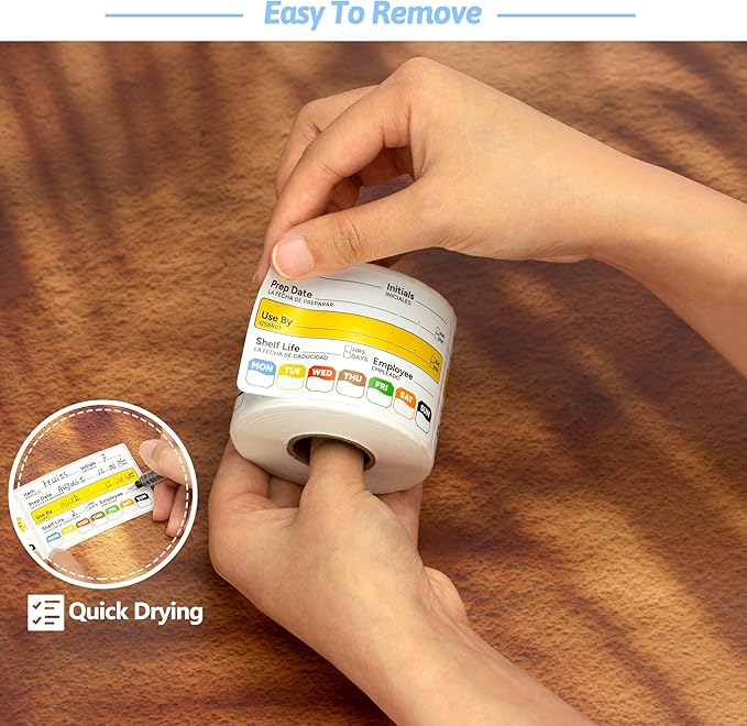 - 1 roll of 300 restaurant quality food labels, 2 x 3 inches Self-Adhesive Removable Freezer Food Labels to record information including food storage dates, contents, use by and so on.
