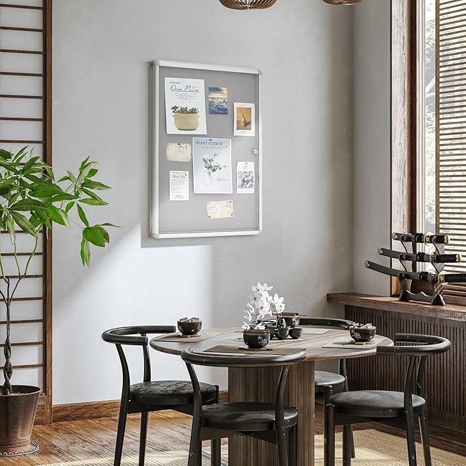 - Long Lasting and Stylish: our lockable noticeboard features a quality backing that is self healing and accepts pins; The clear acrylic door, silver finished aluminum frame and ABS round plastic corners add a classic look to your office or home, strong and stylish, it will be an ideal addition to your space