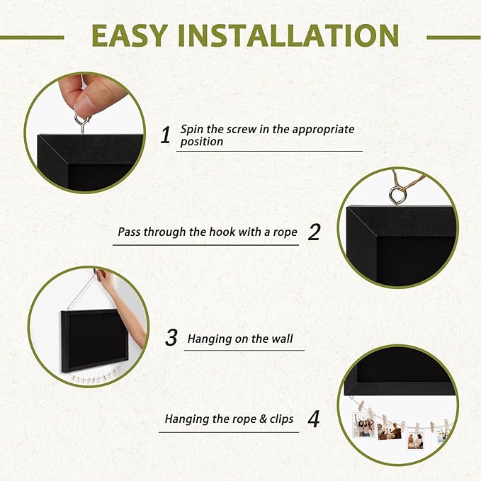 - [Excellent Design]: Featuring an excellent design, this decor vision board combines functionality with aesthetics seamlessly. The addition of rope and clips design allow you hold photos and messages through clips and also can pin photos and messages into the cork board.The vintage wooden frame in a classic black shade adds a touch of elegance to any space.
