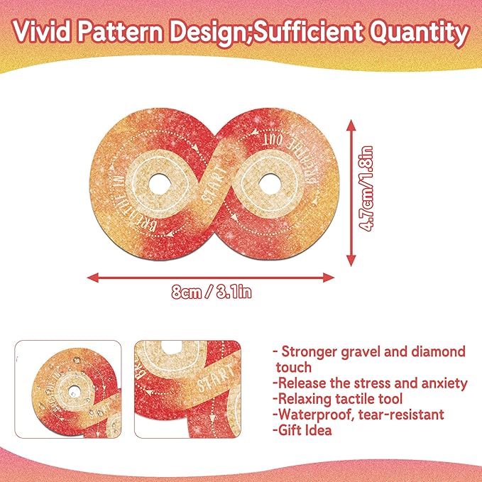 - Rest Assured to Use : Clean the aimed surface you want to appy,just peel these calm stickers and stick to any places.The textured surface provide relaxing experience when you touch it.If there are any problem when you receive these anxiety relief item,please let us know and we are gald to offer help