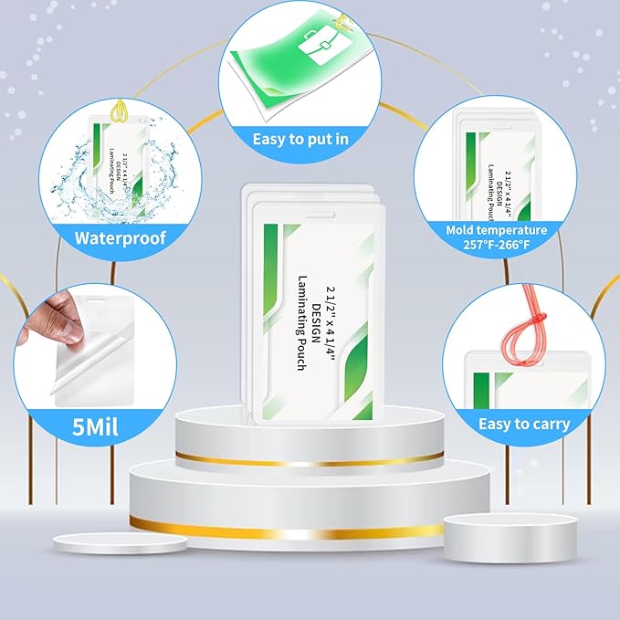 - Durable Material: The laminating pouch with colorful Loop sealing temperature is recommended to be 257°F-266°F, anti-tear, anti-scratch, anti-dirt, waterproof, more effective protection of your business cards, longer-lasting use.