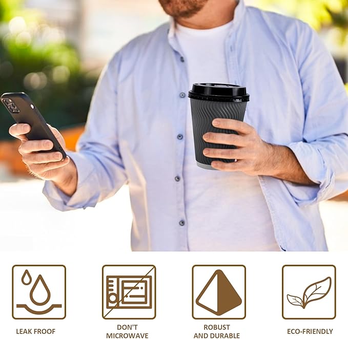 - 【Leak and Spill Proof】These 12 oz coffee cups with lids that fits easily and won't break. The sipping hole takes stirrers and straws, and the rolled cup rim is firm and strong to avoid spillage.