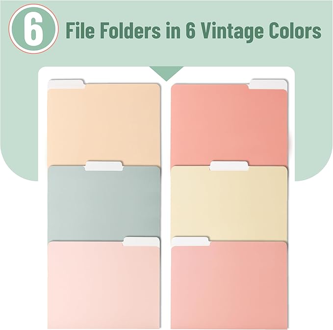 Mr. Pen- File Folders, 6 Pack, Vintage Colors, 1/3-Cut Tab, File Folders Letter Size, Colored File Folders, Office File Folder, Colored Folders, Office Supplies File Folders, File Folders with Tabs
