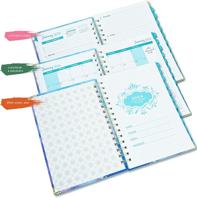 2024 Planner, Weekly and Monthly Planner Spiral Bound, Runs from January 2024 to December 2024, A5, Weekly and Monthly Planner Spiral Bound, Runs from Januaryto December 2024, A5 (Purple)