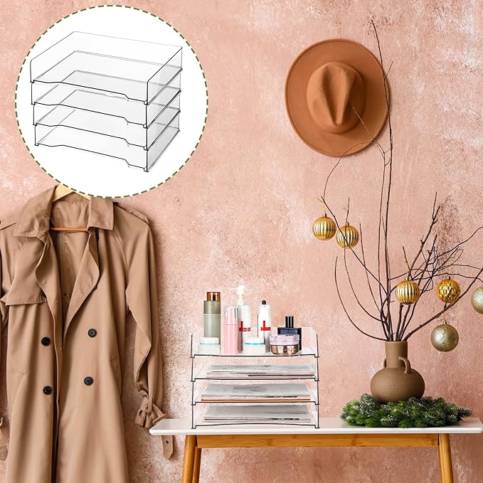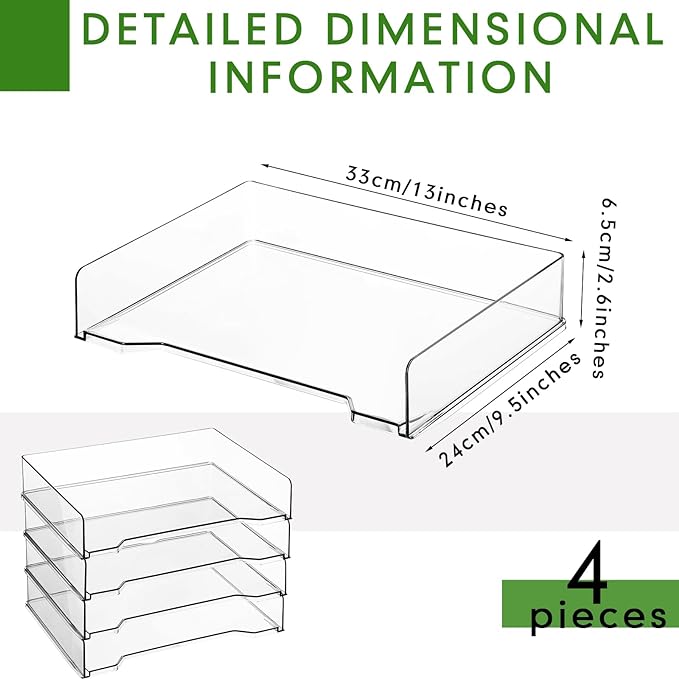 - Quality Material and Stackable: our 4 paper holders for desk are designed with durability in mind; They are made of quality PET material, not easily scratched or deformed, effectively serving your needs for an extended period; Stackable features make better use of desktop space