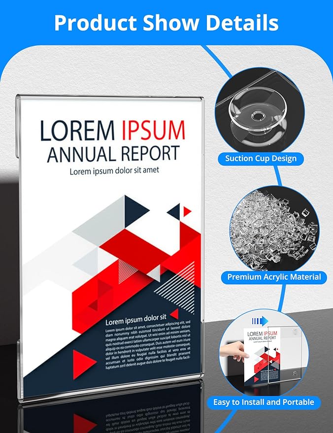 - SUITABLE SIZE - This acrylic sign holder measures 8.5 x 11 inches and can be firmly attached to the inside of the door and window glass. Use in home, office, store, restaurant, church, hospital, school, etc. Ideal for displaying information, posting photos, posters, menus, schedules, ads, discounts, and other temporary notices.