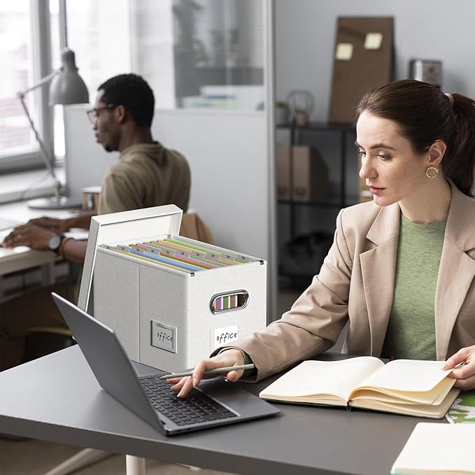 - STURDY & STACKABLE: The file box with lid is made of high quality linen fabric and durable PP board material, the bottom is supported by an additional thickened base plate, with better support and bearing capacity. Also the file boxes can be stacked when in use or folded for easy storage when not in use.