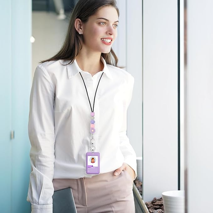 - Safe and Durable Material: Quprofa badge lanyards are made of high-quality black or gold satin nylon ropes, the material is soft, smooth and comfortable to touch;The silicone beads and ABS Card Holders are strong, lightweight, safe and skin-friendly;The transparent ID Holders are made of high-quality PVC material, which are waterproof and wear-resistant