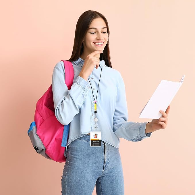 - Safe and Durable Material: Quprofa badge lanyards are made of high-quality black or gold satin nylon ropes, the material is soft, smooth and comfortable to touch;The silicone beads and ABS Card Holders are strong, lightweight, safe and skin-friendly;The transparent ID Holders are made of high-quality PVC material, which are waterproof and wear-resistant