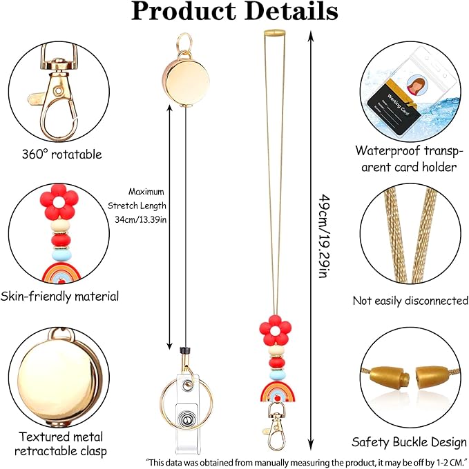 - Practical Details: Our lanyard can be adjusted in length as needed, and for safety, a detachable safety buckle is designed on it;The badge reel's nylon cord easily extends to 13.39 inches, allowing you to use your ID card, access card, or keys without having to remove them repeatedly, making it perfect for everyday use;The metal hinge at the end of the lanyard can be rotated 360°;The additional lobster clasp makes it easy to use the lanyard alone to carry keys, wallets, etc;This will undoubtedly bring convenience to your work and life