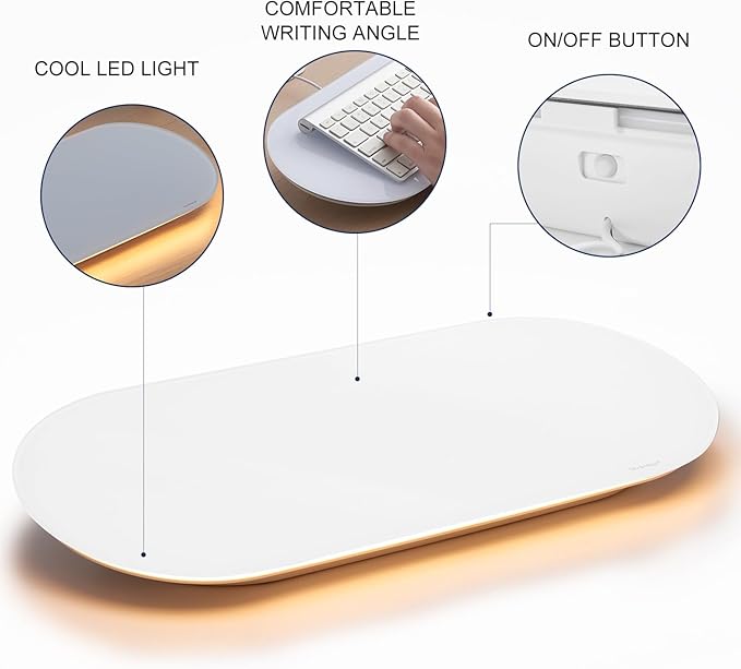 - PERSONALIZED DESIGN: The 17" X 7" desktop glass whiteboard is designed with a string of warm lights around the board, keep the usb cable plugged in, get a cool led whiteboard. The oval plate makes you feel better to hold and save more space on the table.