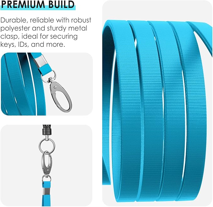 10 Pack Lanyards for ID Badges, Cruise Ship Cards, Keys, Keychain, Long-lasting Neck lanyard Strap with Clasp, Cruise Badge Key Lanyards for Men, Women, Teachers, Kids (Light Blue)