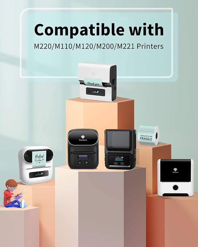 - Strong Compatibility- Phomemo labels are perfectly compatible with Phomemo M110/M120/M150/M200/M220/M221/M250/M260, and compatible with NelkoGlobal M100, Ponek M100, Itari M102 thermal printers, without the hassle of sheet waste, or jams
