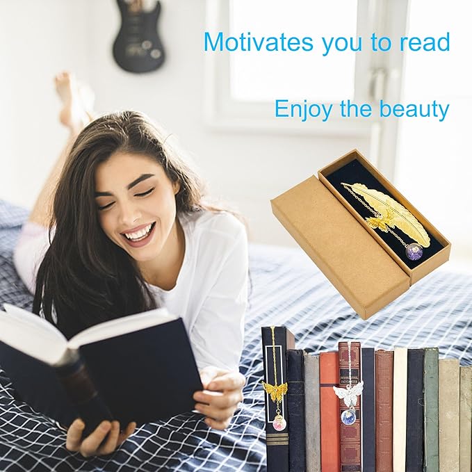 - Unique Vintage-Style Bookmarks: Our vintage-style metal feather bookmarks with 3D butterfly pendants are designed to motivate reading and serve as delightful conversation starters for individuals of all ages and preferences. They make the best teacher gifts and women's gifts, perfect for various occasions including teacher appreciation, Christmas, Valentine's Day, Mother's Day, and more.