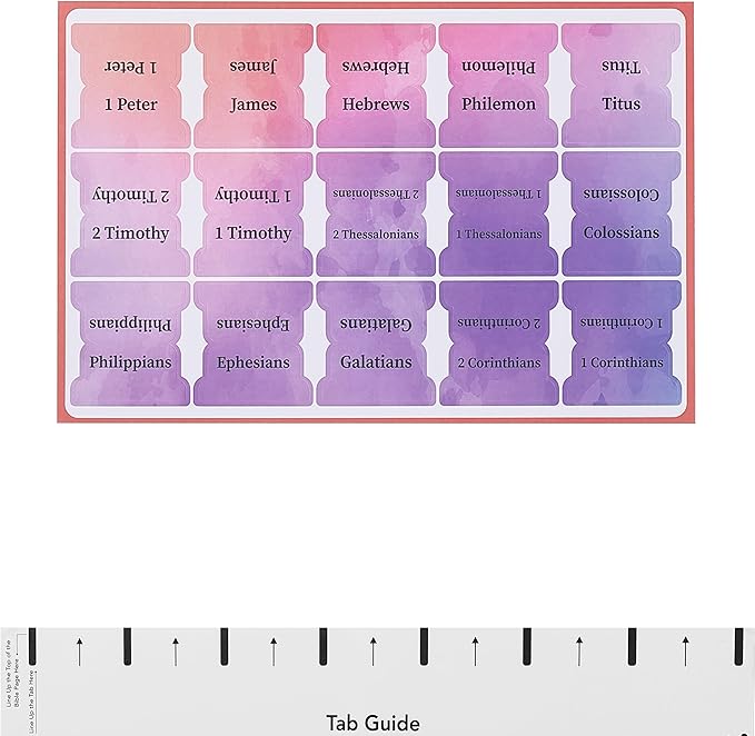 - With their large, clear font and bright printing, these bible tabs offer a convenient organizational tool for those looking to engage in Bible study or journaling.
