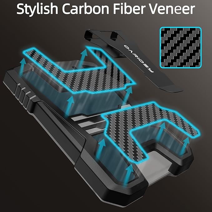 Oaridey Carbon Fiber Badge Holder/ID Card Holder/Portable Travel Wallet with Manganese Steel Clip, Heavy Duty Vertical Clear ID Holder for Work ID, Credit Cards