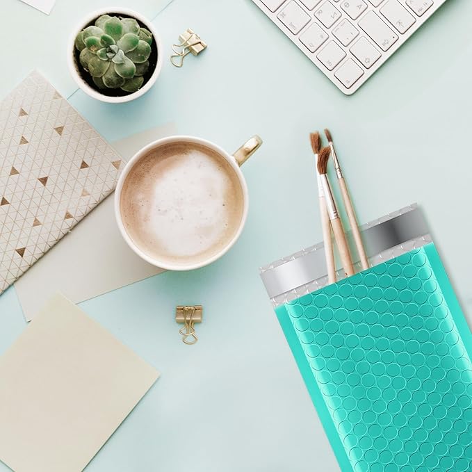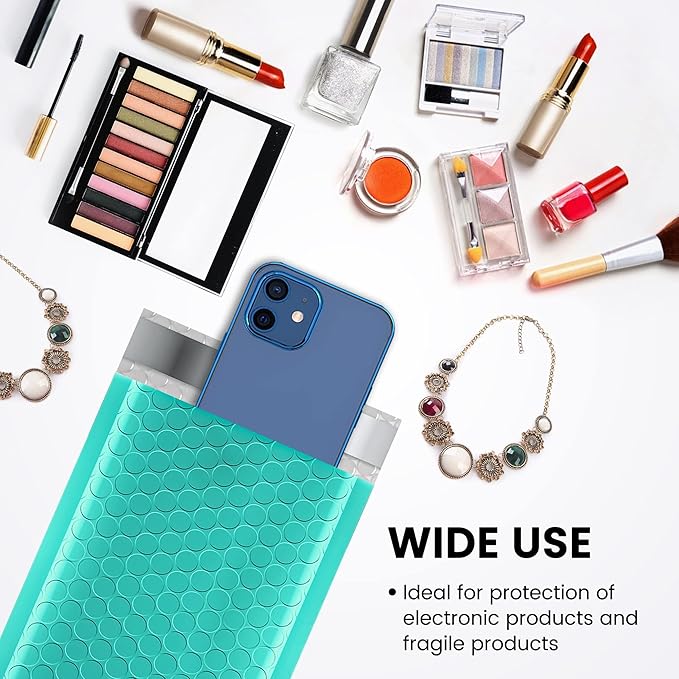 - Teal Bubble Mailers #000: The Outer size is 4x8 inch, while the inner size is 4x7 inch. Suitable to transport for jewellery, makeup, cards, phone case, Lips, photos,handcraft and more. Great for small business packing,shipping gifts mailer.