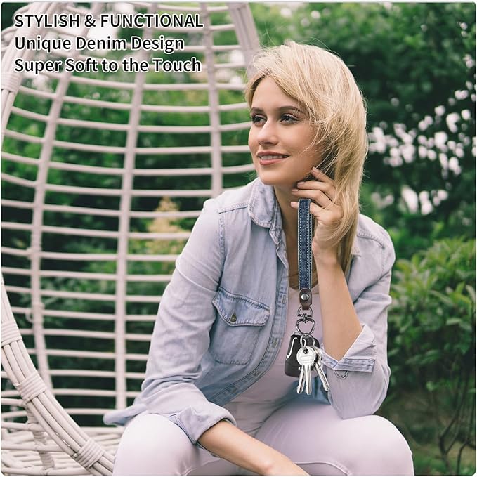 Fishent Denim Wristlet Keychain for Women Men, Cute Key Chain, Wrist Lanyards for Car Keys ID Badge Wallet Card Holder