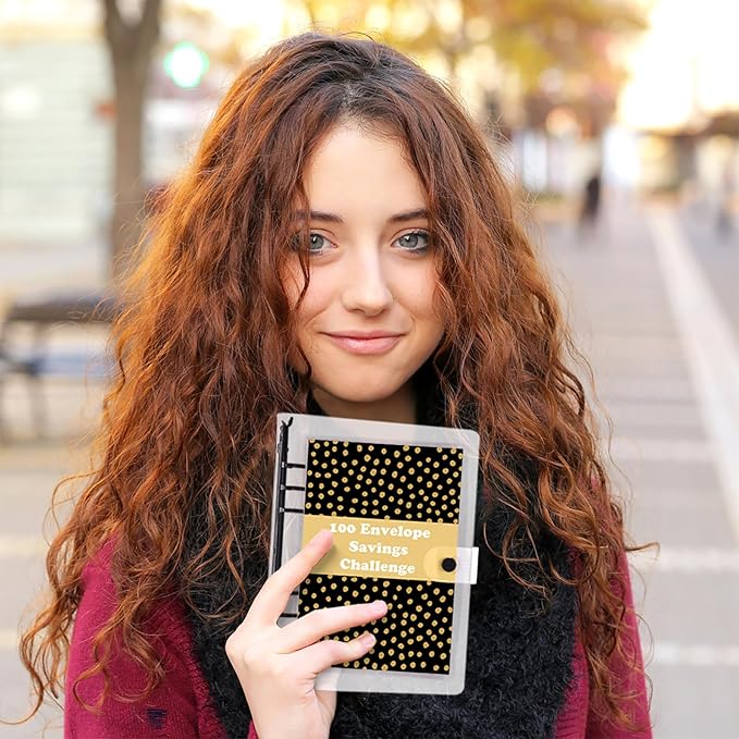 - Money Saving Binder Kit: 1pc PVC A5 6-ring binder, 25pcs 6-hole cash envelopes pre-numbered 1-100, 3 sheets reusable challenge trackers, 1pc savings goal sheet