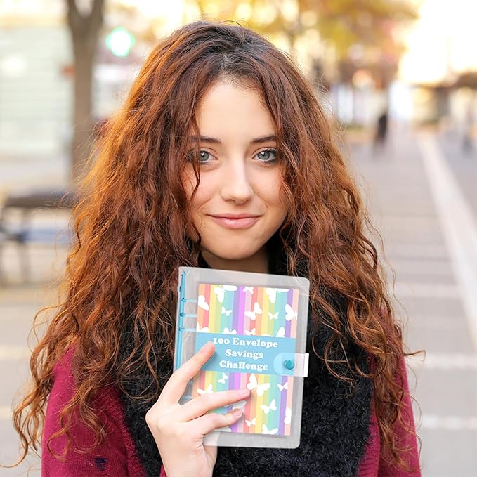 - Money Saving Binder Kit: 1pc PVC A5 6-ring binder, 25pcs 6-hole cash envelopes pre-numbered 1-100, 3 sheets reusable challenge trackers, 1pc savings goal sheet