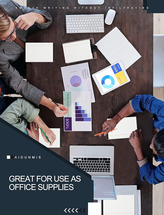 - [KEEP NOTES SECURE]: Each writing pads 5x8 has black top bindings. The memo pads 5x8 perforated top edge allows for easily and neatly removing individual sheets of paper. Lined notepad has sturdy header and bindings keep the pages of your crucial notes protected, your writing pad won't fall apart under pressure like some lesser notepads. Legal pad writing pads features a cardboard backing for extra support when you writing or taking note, legal pad 5x8 perfect for writing on the go.